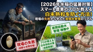 農業と農機 【2026年水稲の猛暑対策】スマート農業のプロが教える白未熟粒を防ぐ方法!現場の失敗から学んだ夜間水管理のリアル
