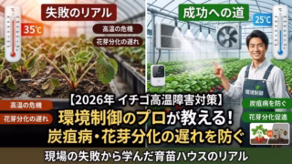農業と農機 【2026年イチゴの高温障害対策】環境制御のプロが教える炭疽病・花芽分化の遅れを防ぐ方法!現場の失敗から学んだ育苗ハウスのリアル