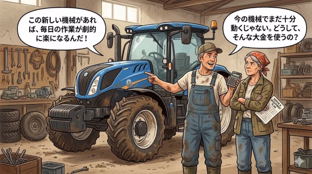 数百万円の農機具を前にしたとき、夫婦の意見が静かに、しかし確実に割れる瞬間です。